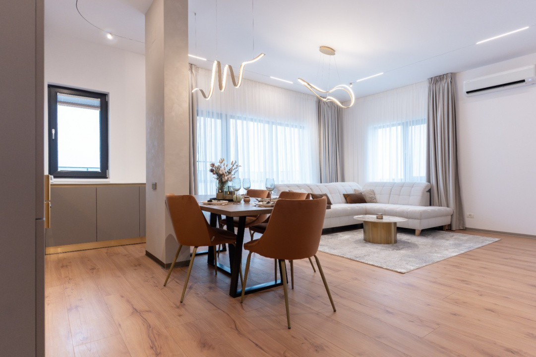 VĂ PROPUNEM SPRE ÎNCHIRIERE UN APARTAMENT DEOSEBIT, CU FINISAJE PREMIUM, SITUAT LA DOAR APROX. 12 MINUTE DE AEROPORTUL HENRI COANDĂ. PROPRIETATEA SE REMARCĂ PRIN ÎNĂLȚIMEA INTERIOARĂ DE 3 METRI, SPAȚII GENEROASE ȘI O TERASĂ SPECTACULOASĂ CU VEDERE DESCHISĂ SPRE AEROPORT.