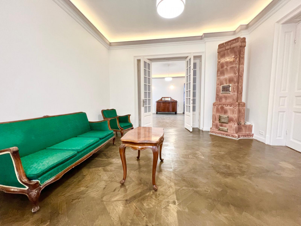 SPATIUL DISPUNE DE 6 CAMERE SI ESTE SITUAT INTR-O VILA INTERBELICA.
